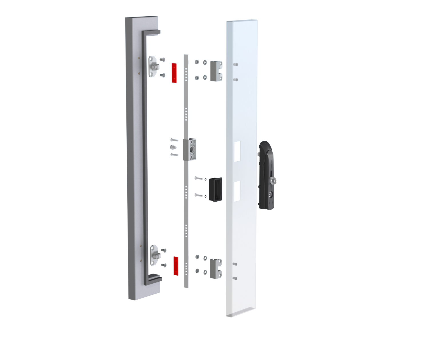 • The latching mechanism is placed outside the sealed door area, resulting in a clean door design with no cut-outs in critical areas.
