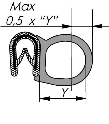 The compression of our sealing edge protection profiles should be at maximum 50% of the "bubble". In practice, the profile should be compressed 30-40% in order to creating the best possible tension in the "bubble", for the best seal possible.